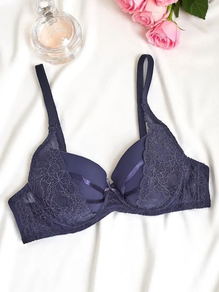 - Doskonały usztywniany biustonosz. Model zapinany z tyłu, posiada regulowane, odpinane ramiączka, dodatkowo ozdobny wzór między miseczkami.