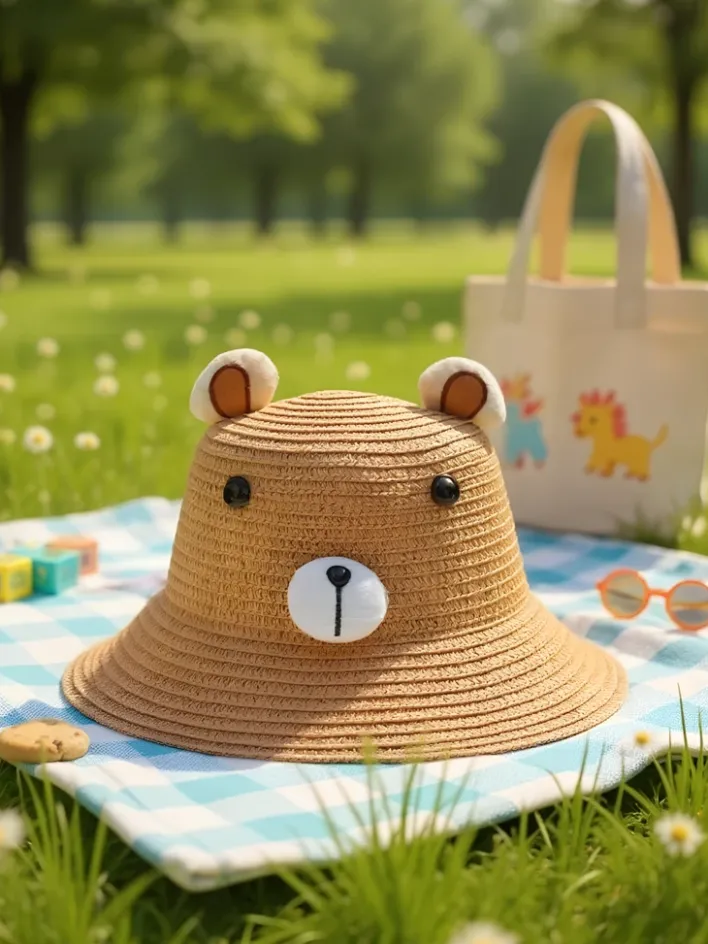 - Uroczy dziecięcy kapelusz słomkowy z naszywką misia. Lekki, przewiewny i idealny na lato. Chroni przed słońcem i dodaje stylu każdej małej główce. Idealny na plażę i spacery!