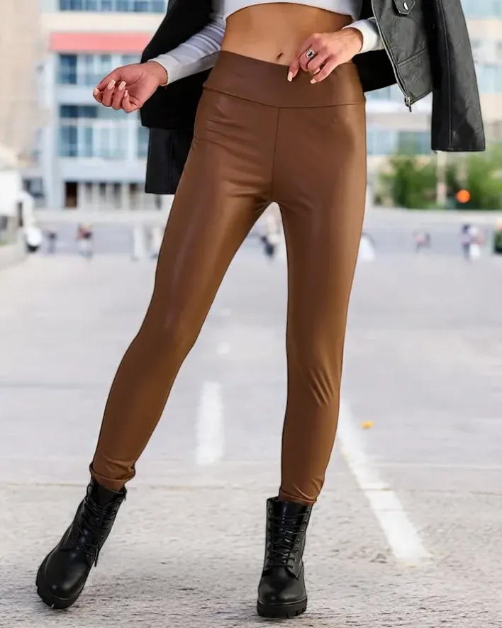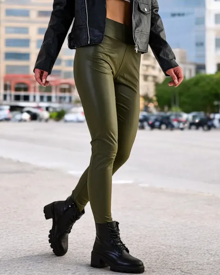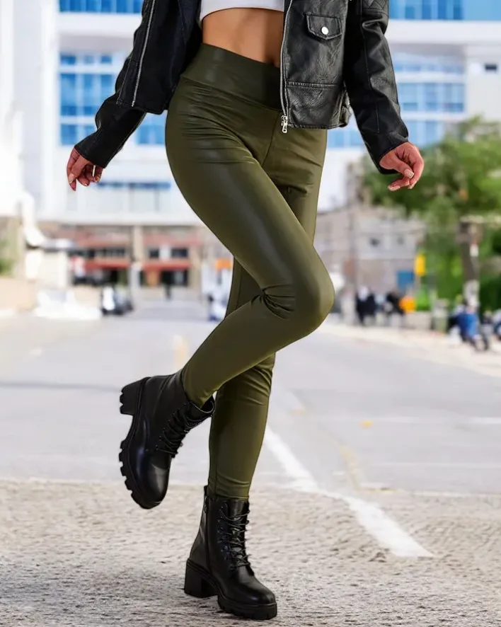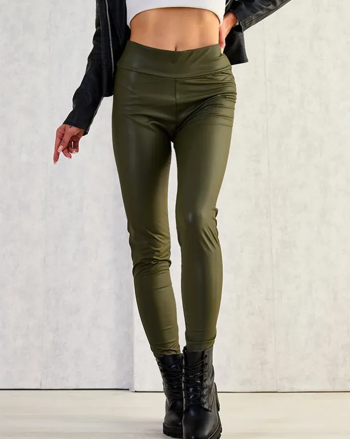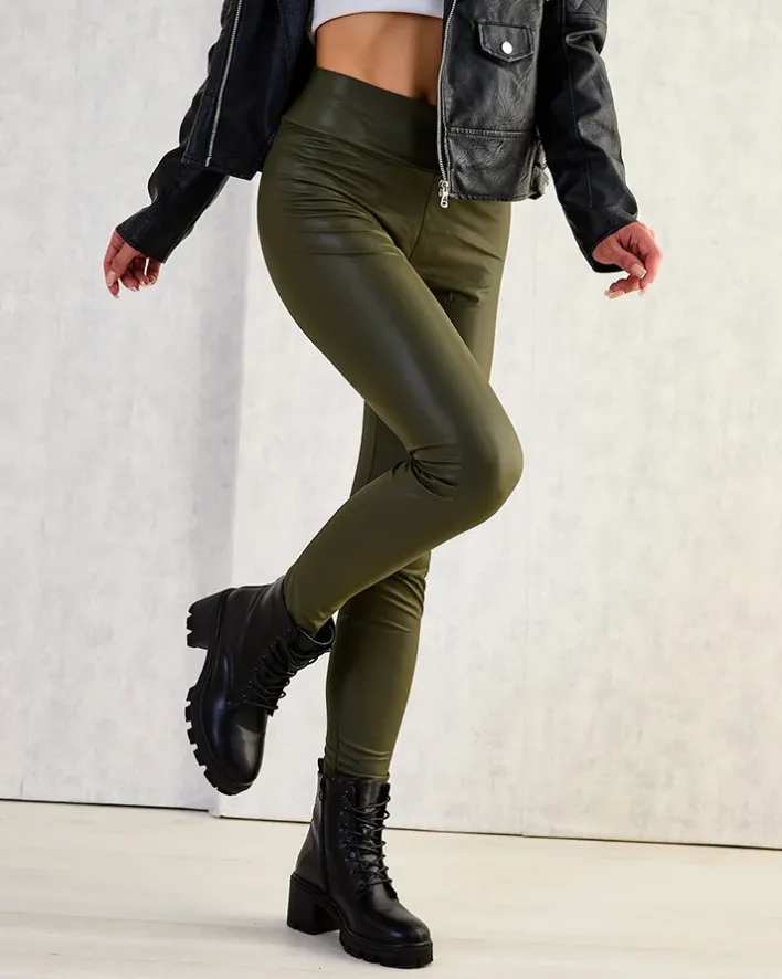 Eko Skórzane|Legginsy / Tregginsy^Royalfashion Damskie eko-skórzane legginsy zielony