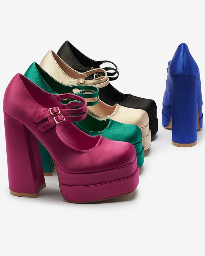 - Super stylowe damskie czółenka na wysokim słupku. Cholewka jest wykonana z materiału tkaninowego, w środku wkładka ze skóry ekologicznej. Model jest zapinany na dwie sprzączki. Idealne obuwie do tworzenia modnych i oryginalnych outfitów!