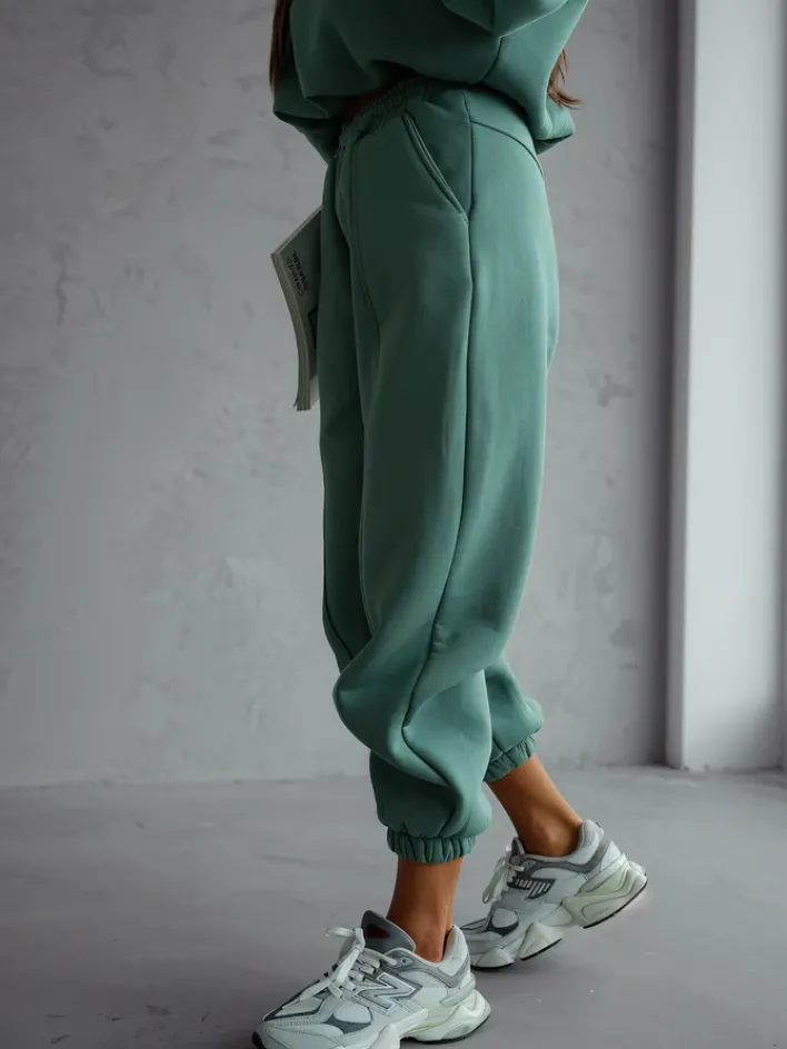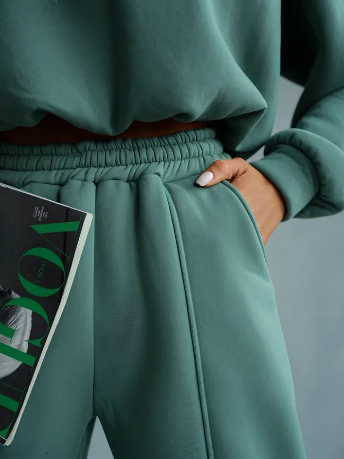 - Wygodny damski komplet dresowy – składa się z bluzy z długim rękawem, spodniami z gumką w pasie oraz z 2 kieszeniami. Must have na co dzień! UWAGA: Dokładność pomiaru (+/-) 1 cm.