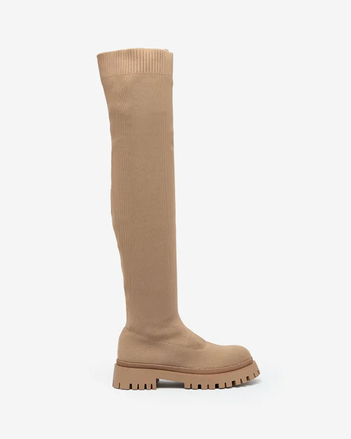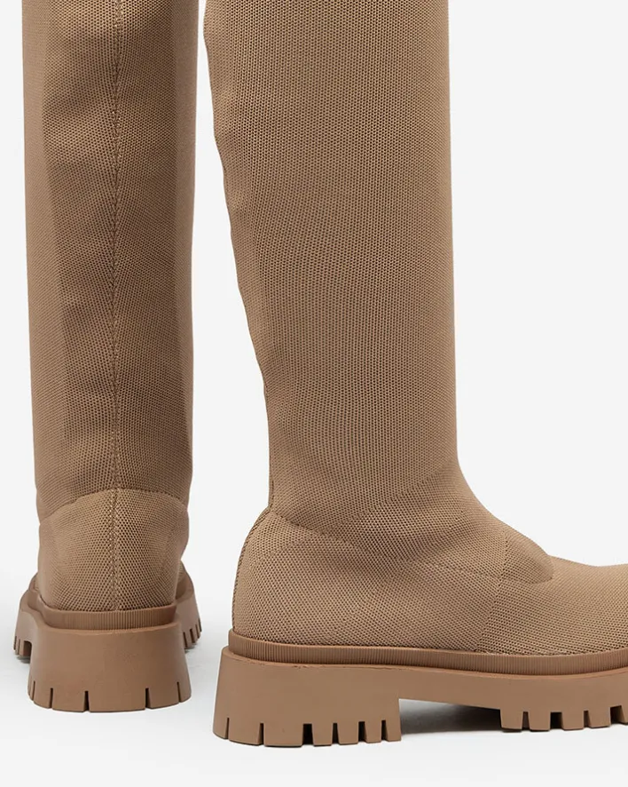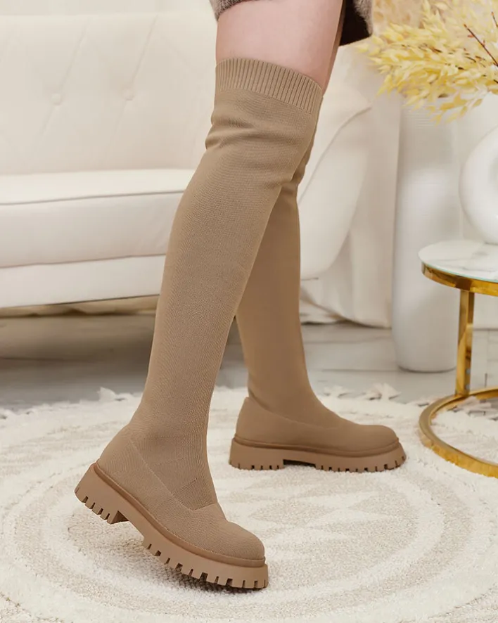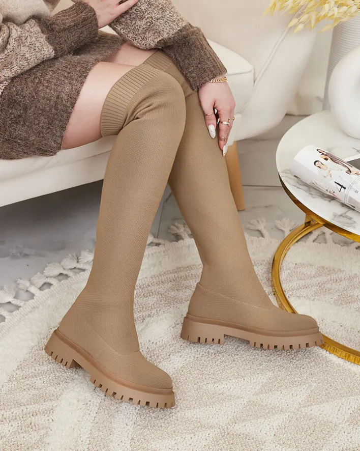 - Klasyczne damskie kozaki na grubszej podeszwie. Cholewka wykonana z elastycznej tkaniny. W środku eko skórzana wkładka. Model wsuwany. Idealna baza dla wielu codziennych looków!