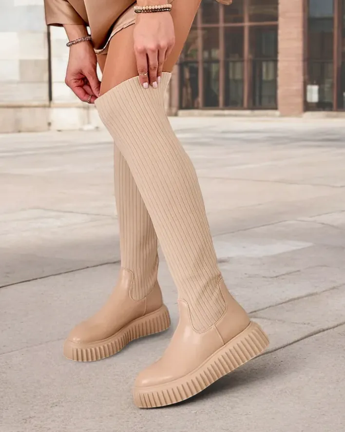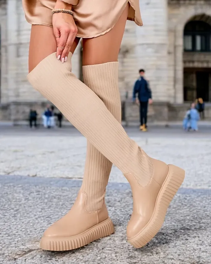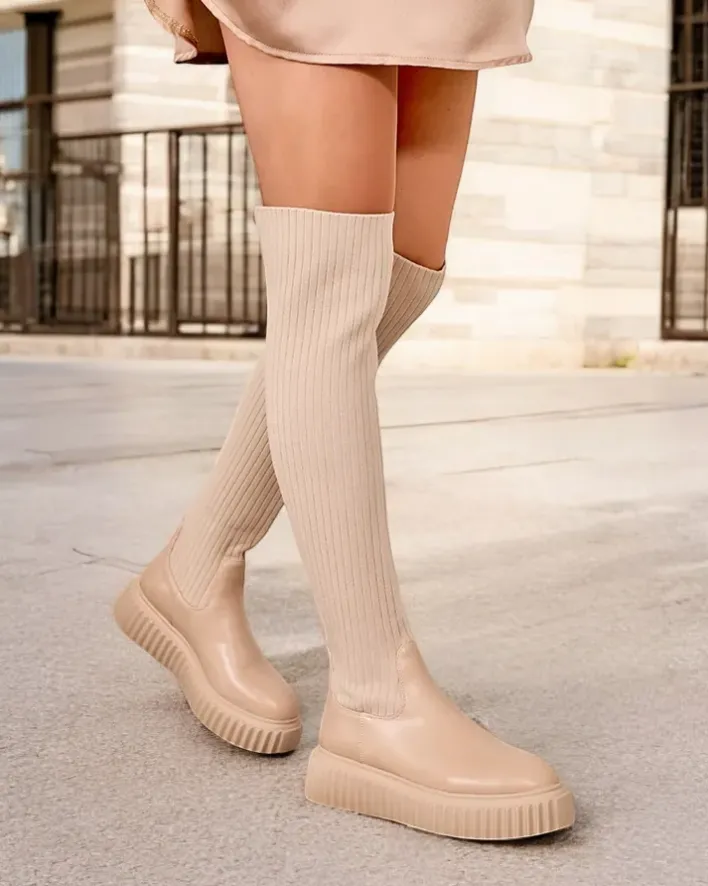 Kozaki Na Płaskim Obcasie|Kozaki Z Ociepleniem^Royalfashion Damskie wsuwane kozaki za kolano Hesoppel czarny