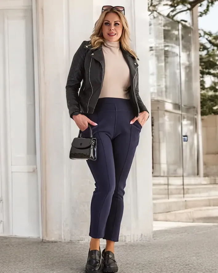 - Super wygodne damskie spodnie typu tregginsy, wykonane z rozciągliwego materiału. Model posiada szeroką gumę w pasie oraz 2 wsuwane kieszenie .Produkt jest ocieplany grubym futerkiem. Doskonałe na co dzień!