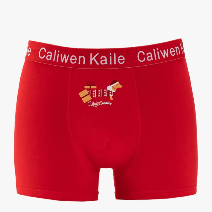 - Czerwone bokserki męskie, zdobione świątecznym motywem. Elastyczna guma w pasie z napisami. Idealne na prezent! UWAGA: Dokładność pomiaru (+/-) 1 cm.
