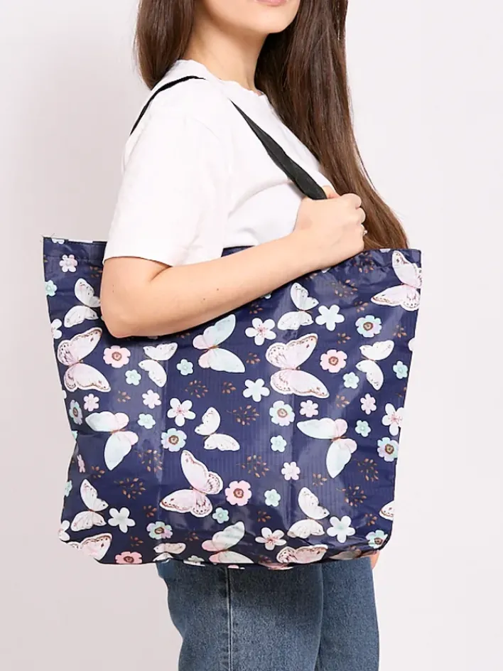 - Duża wzorzysta torba zakupowa, która po złożeniu jest wielkości portfela. Wykonana ze sztywnego, nieprzemakalnego materiału a’la cerata. Produkt pojemny i bardzo praktyczny – idealny na codzienne zakupy!