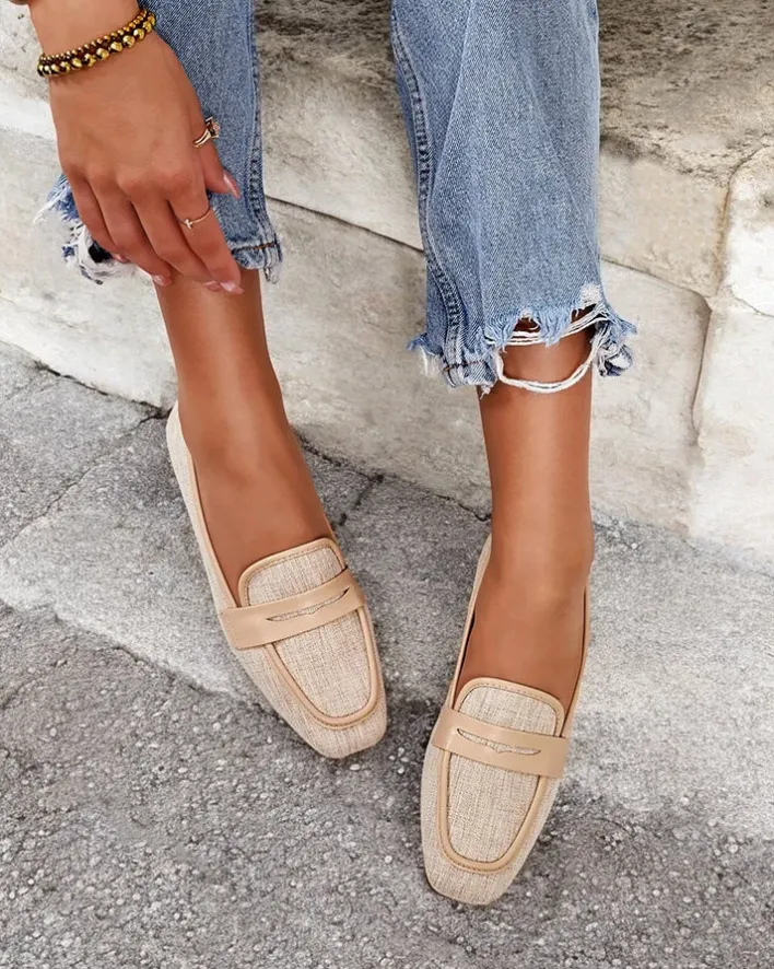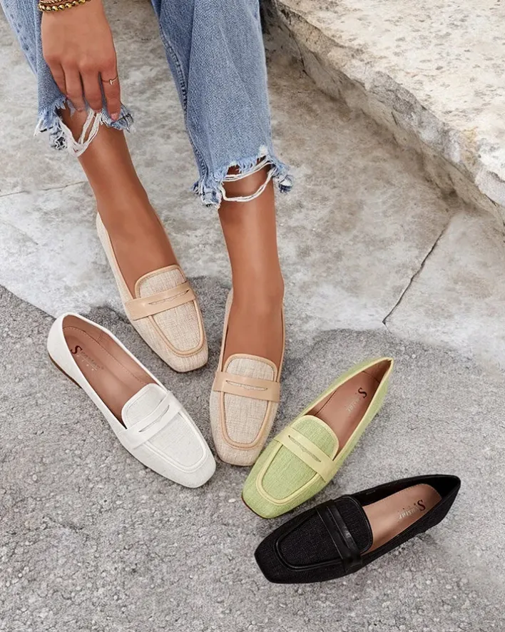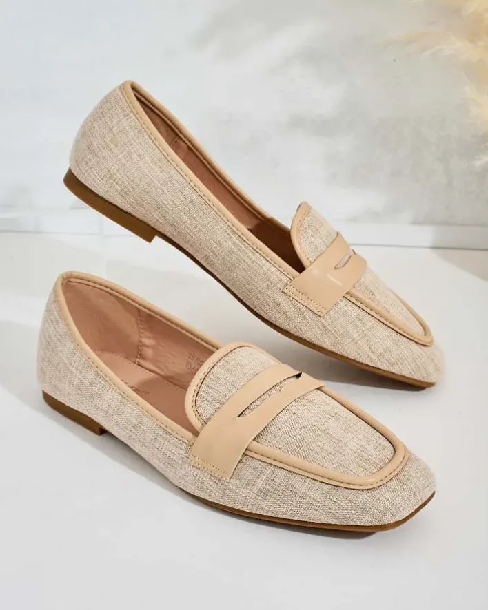 - Przepiękne damskie półbuty typu mokasyny na płaskiej podeszwie. Model w tylu casual i jest wykonany z tkaniny i eko skórzanej wkładki. Nosek jest zaokrąglony. Idealna baza dla wielu codziennych looków!