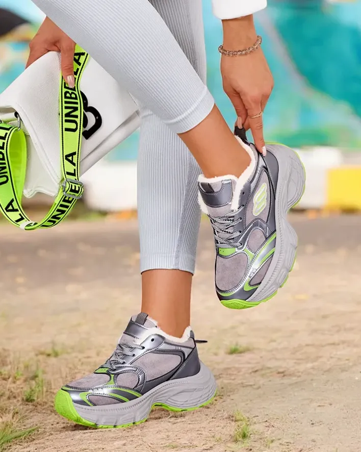 - Damskie ocieplane buty sportowe typu sneakersy na platformie. Sznurowana cholewka wykonana z połączenia skóry ekologicznej i eko zamszu. W środku miękkie futerko. Super dodatek do Twoich zimowych outfitów w stylu casual!