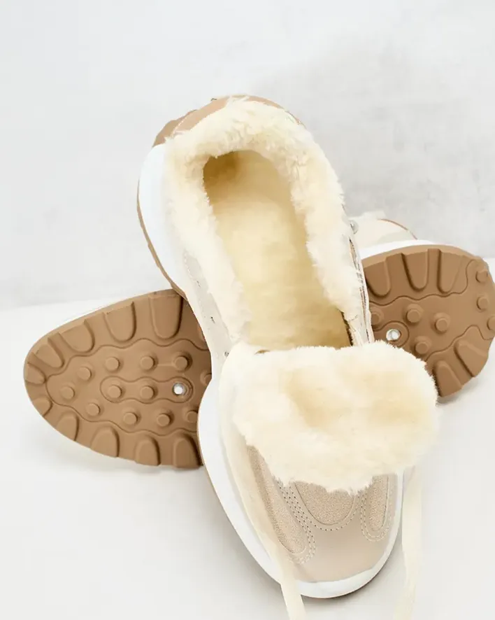 - Damskie ocieplane buty sportowe typu sneakersy na grubszej podeszwie. Sznurowana cholewka wykonana z zamszowej skóry ekologicznej z elementami eko skóry. W środku miękkie futerko. Super dodatek do Twoich zimowych outfitów w stylu casual!