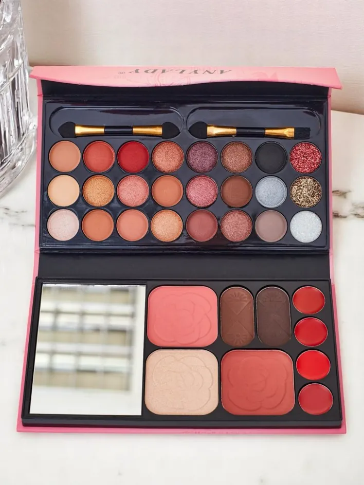 - Kompaktowa paletka do makijażu łączy cienie, produkty do konturowania i kolory do ust. Idealna w podróży i na co dzień – wszystko, czego potrzebujesz, w jednym poręcznym opakowaniu.