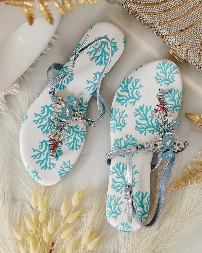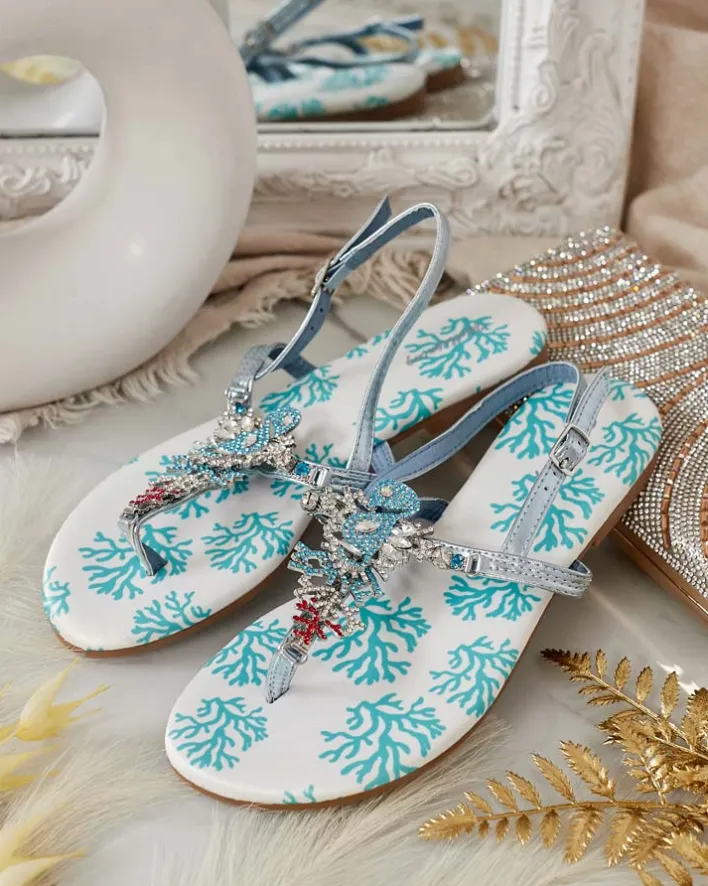 - Modne płaskie damskie sandałki typu japonki, wykonane w całości z eko skóry. Zapinane na sprzączkę z ozdobami na sprzączkę, które dodają im subtelności. Doskonałe na letnie spacery i wyjątkowe okazje!