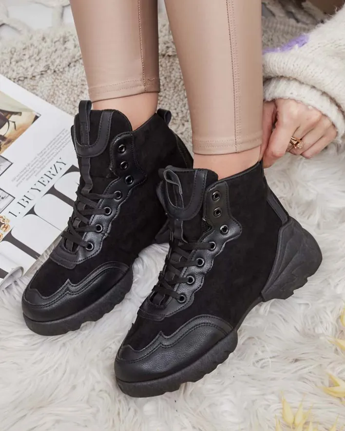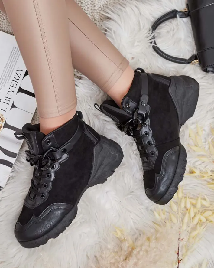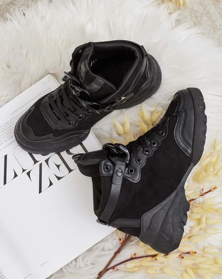 - Sneakersy damskie na płaskiej podeszwie – perfekcyjne połączenie stylu i komfortu. Obuwie wykonane z połączenia eko skóry oraz eko zamszu. Model sznurowany, posiada tkaninową wkładkę. Dodatkowo zdejmowana ozdoba w postaci łańcuszka.