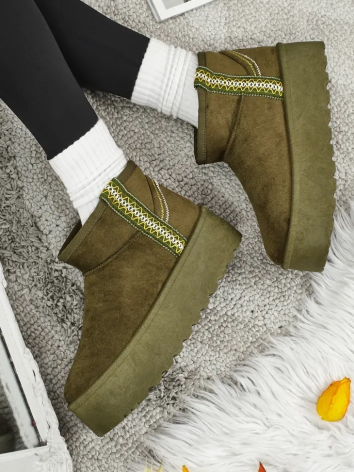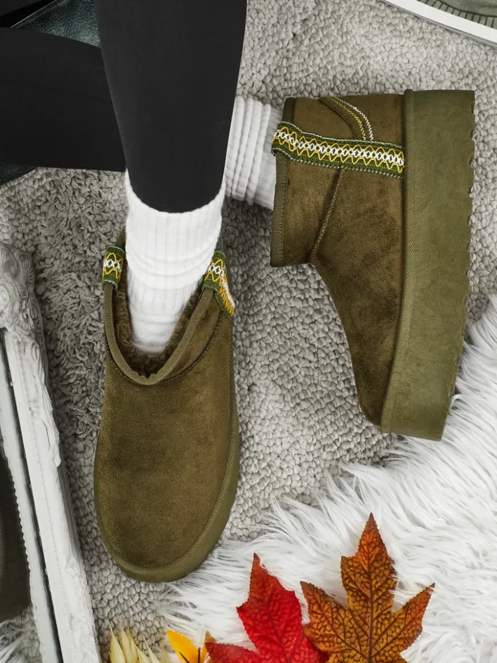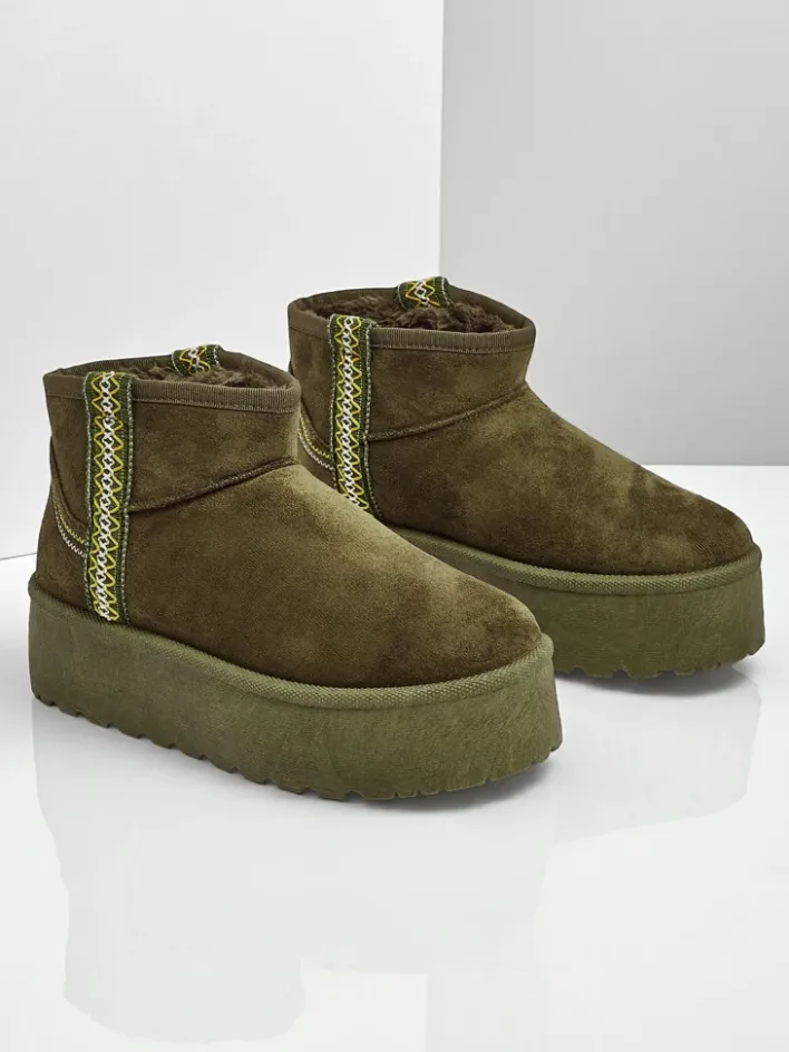 - Świetne damskie zimowe buty typu śniegowce na grubszej podeszwie typu platforma. Cholewka wykonana jest ze skóry ekologicznej zamszowej, środek ocieplony futerkiem. Idealna baza na zimę!