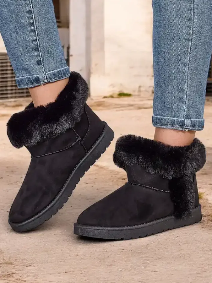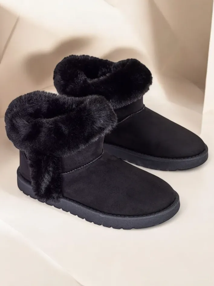 - Mega stylowe krótkie damskie ocieplane śniegowce wykonane ze skóry ekologicznej zamszowej. Posiadają środek wypełniony futerkiem. Buty na płaskiej podeszwie- idealne do zimowych casualowych outfitów!