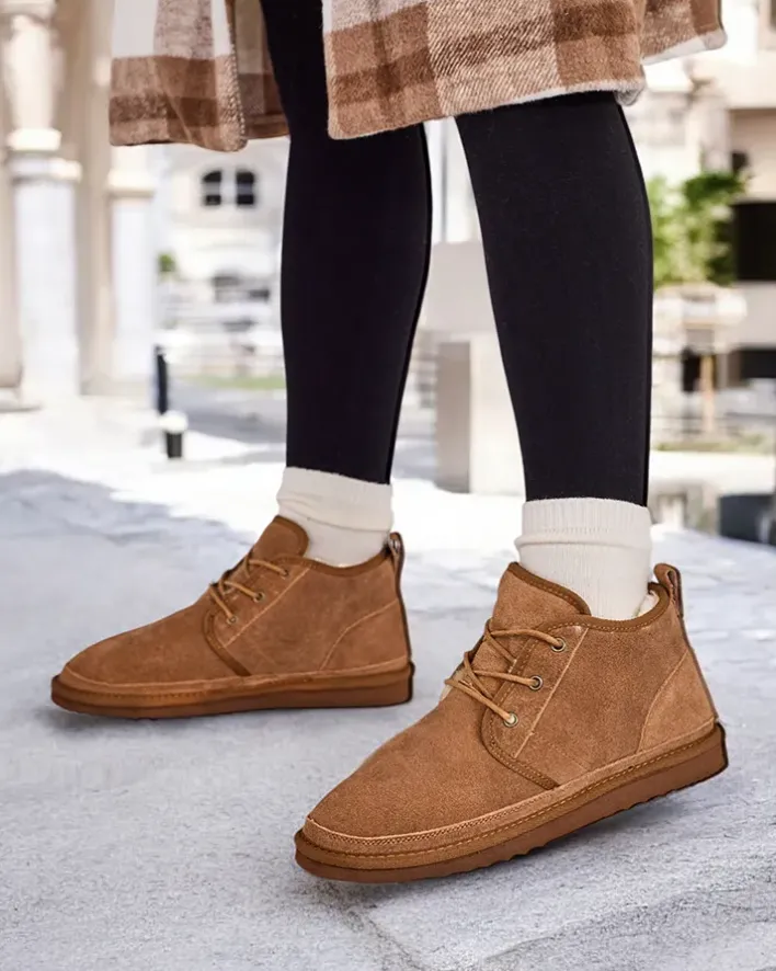 - Cudowne męskie śniegowce na płaskiej podeszwie, wykonane z miękkiej skóry naturalnej zamszowej. Środek buta jest ocieplony miłym w dotyku futerkiem. Doskonałe na chłodniejsze dni! BRĄZOWE BUTY OCIEPLANE ŚNIEGOWCE GAVIN