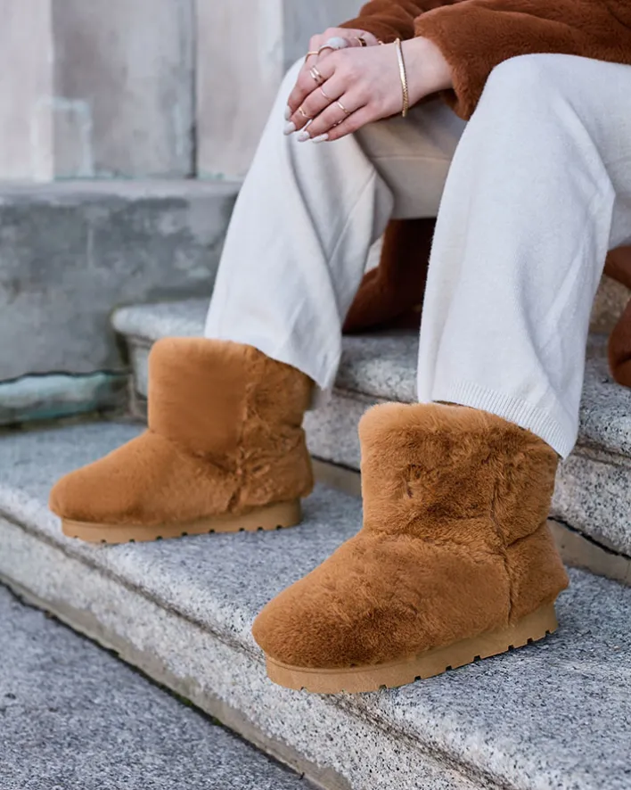 - Stylowe damskie śniegowce na płaskiej podeszwie, wykonane w całości z materiału sztucznego. Idealne na zimowe spacery! CAMELOWE DAMSKIE OCIEPLANE BUTY ŚNIEGOWCE OTTOLA