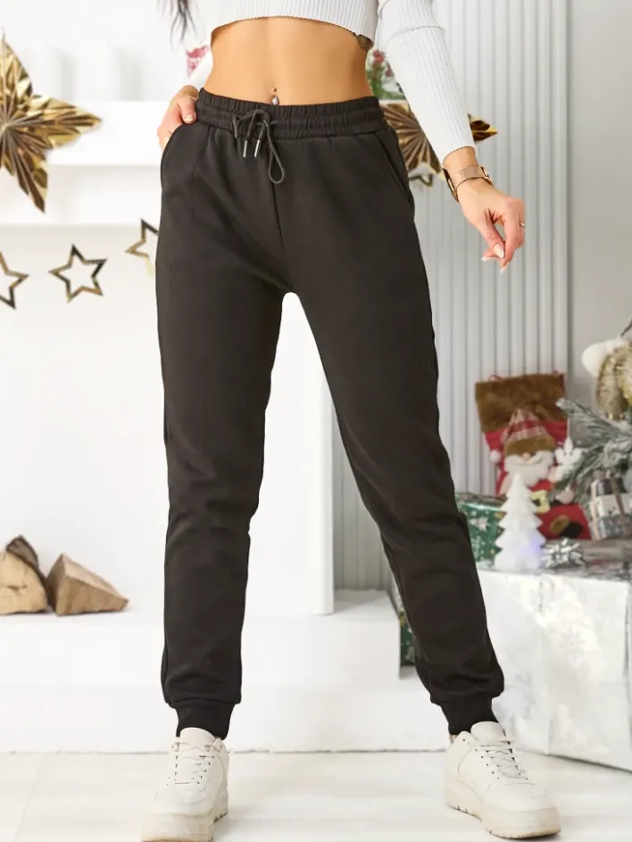 - Ponadczasowe damskie spodnie dresowe, wykonane z miękkiego materiału. Model o prostym kroju, posiada dwie wsuwane kieszenie i gumę w pasie i troczki. Idealny wybór na co dzień!