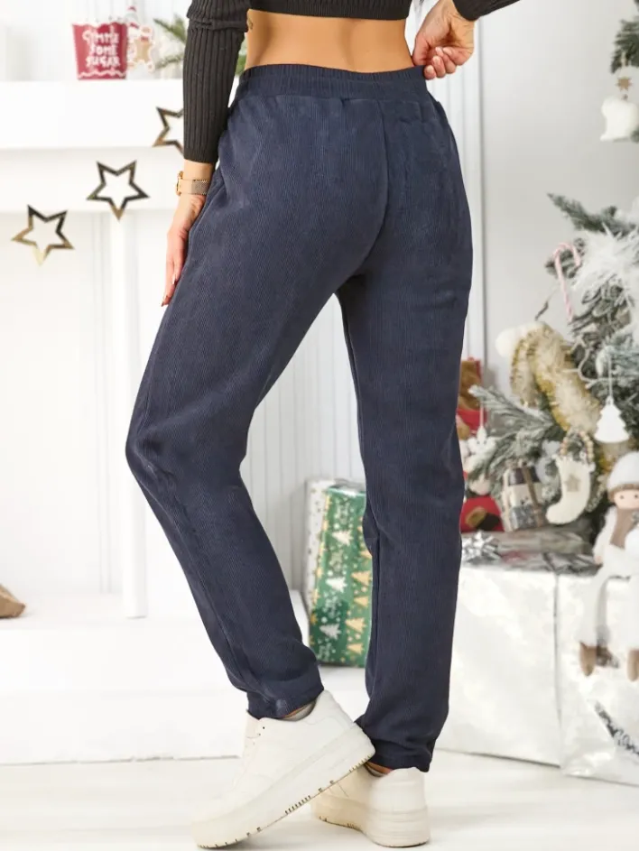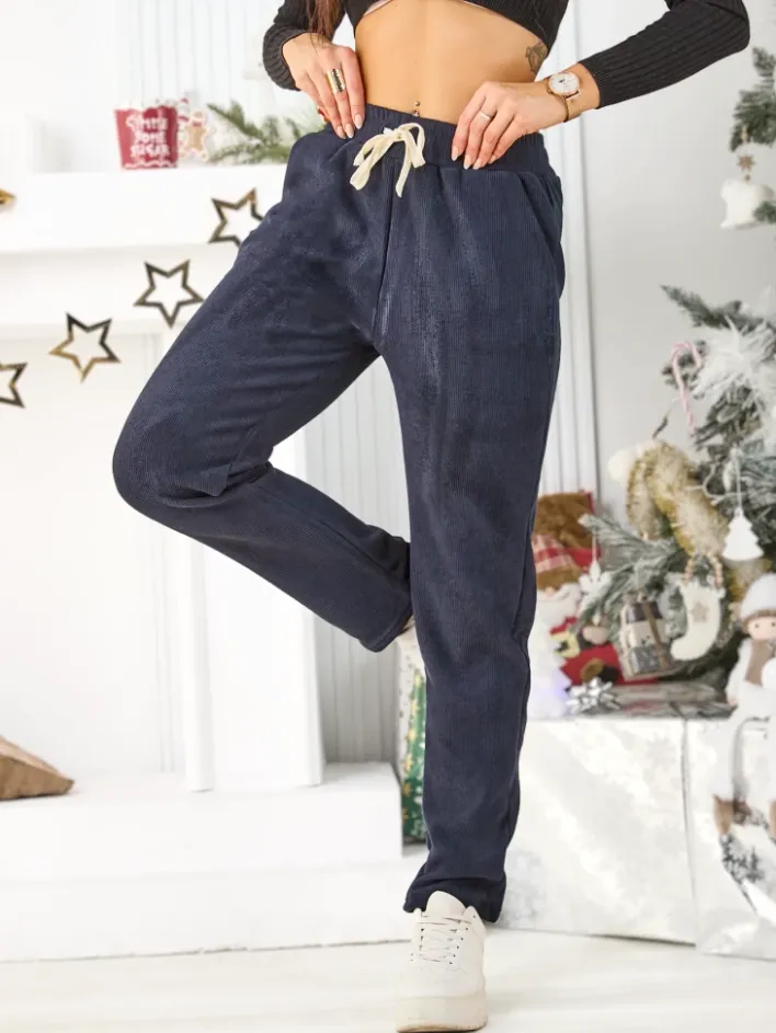 - Ocieplane damskie spodnie dresowe, wykonane z miękkiego materiału a’la welur. Model o prostym kroju, posiada dwie wsuwane kieszenie i gumę w pasie z troczkami. W wewnątrz pokryte ciepłym polarkiem. Idealny wybór na co dzień!