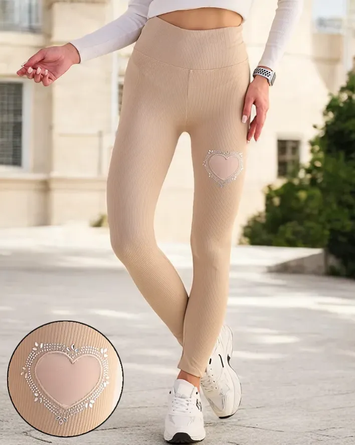 Spodnie Dresowe^Royalfashion Legginsy damskie beżowy