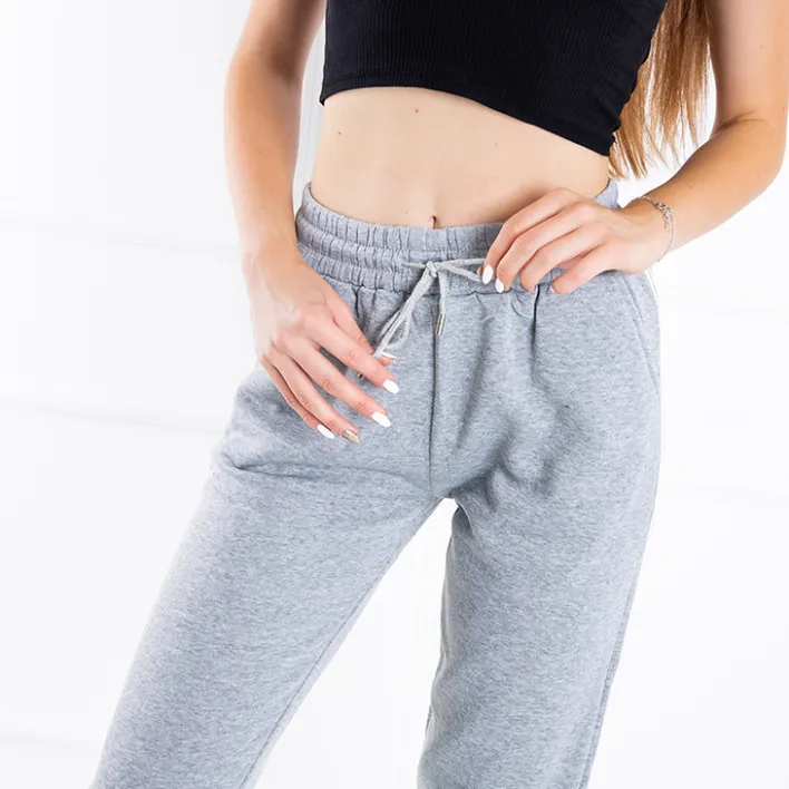 - Wygodne spodnie dresowe damskie ze ściągaczami na końcach nogawek. Dodatkowo lampasy, guma w pasie oraz troczki. Wyższy stan zapewnia komfort codziennego użytkowania.