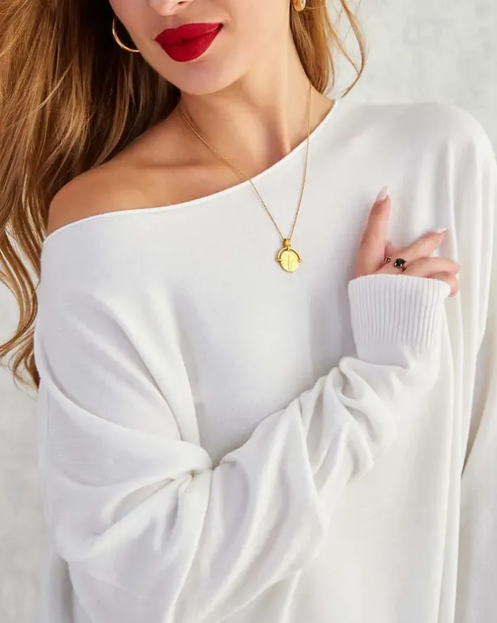 - Sweter damski z okrągłym dekoltem wykonany z przyjemnej tkaniny. Model posiada długie rękawy. Idealna baza na chłodniejsze dni!