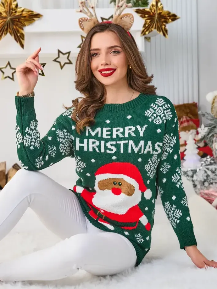 - Świąteczny sweter z mikołajem to uroczy akcent w twojej garderobie! Miękka dzianina, wesoły mikołaj i świąteczne wzory sprawią, że poczujesz magię Bożego Narodzenia. Idealny na rodzinne spotkania i zimowe wieczory pełne ciepła!