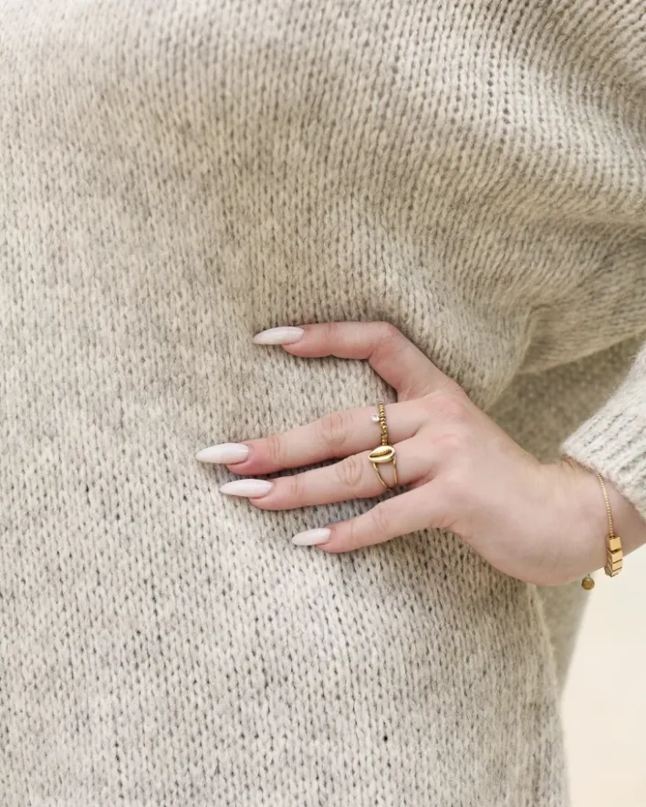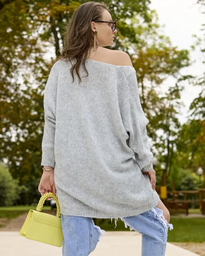 - Klasyczny damski sweter typu oversize – to idealny wybór na różne okazje. Wykonany z przyjemnego w dotyku materiału. Model z okrągłym dekoltem, posiada dół zakończony elastyczną gumą.