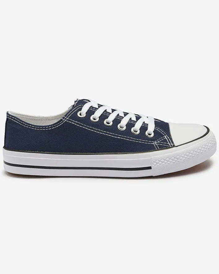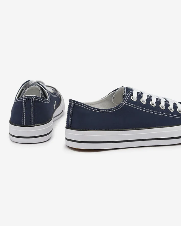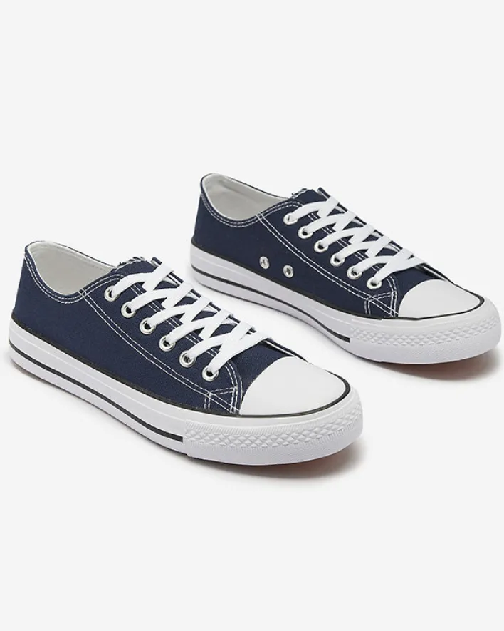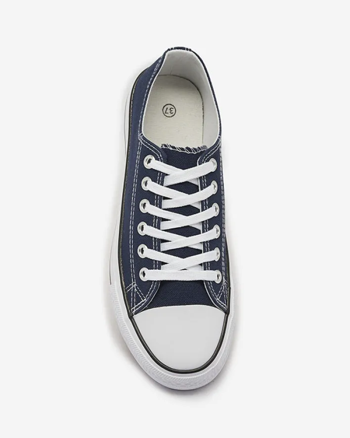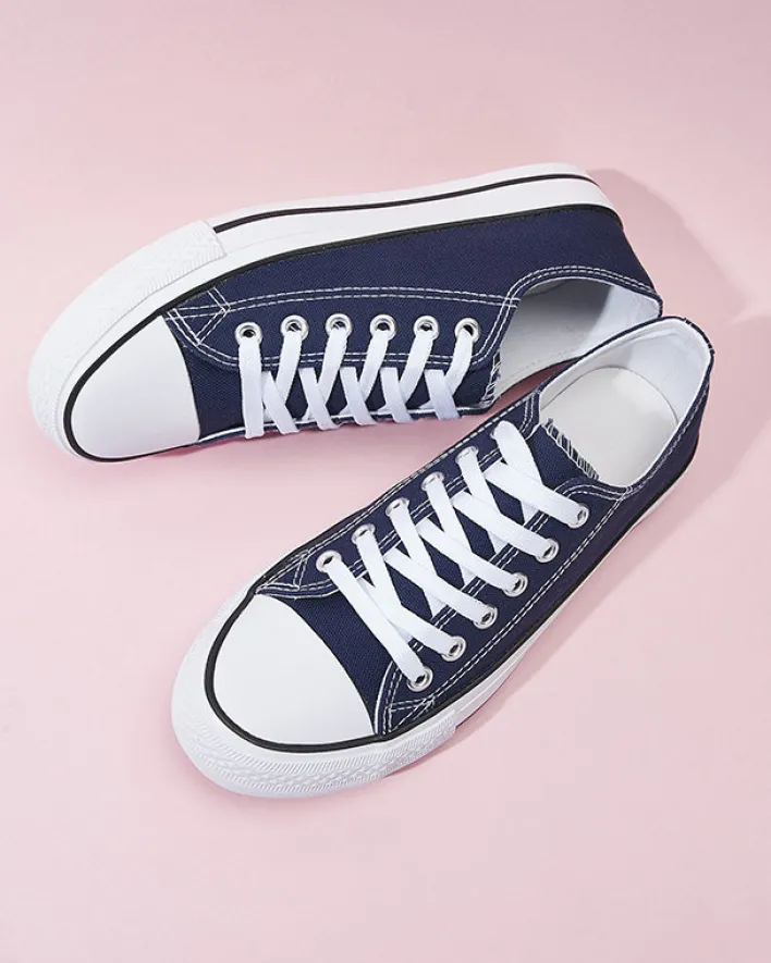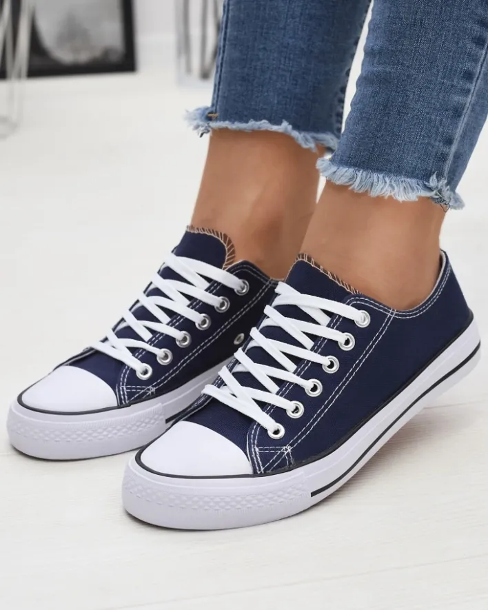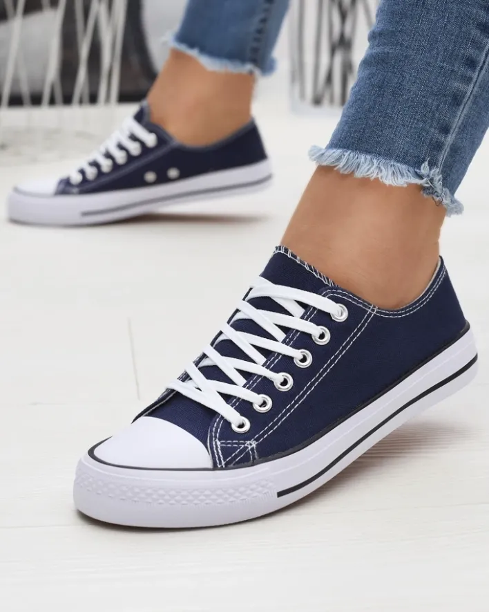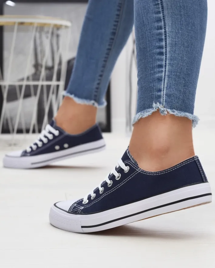 - Klasyczne damskie sznurowane trampki na płaskiej podeszwie. Cholewka jak i wkładka wykonane są z materiału tkaninowego. Super dodatek do Twoich casualowych outfitów!