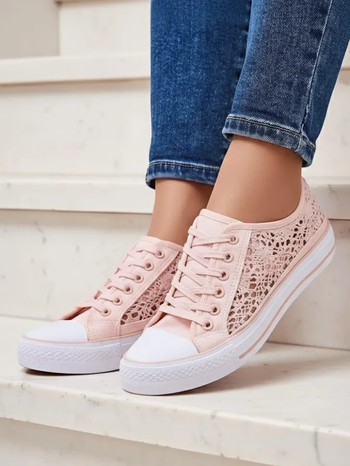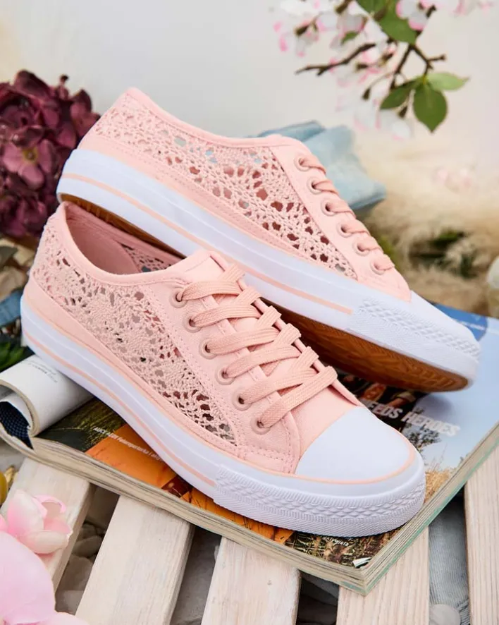- Damskie buty na płaskiej podeszwie. Para w stylu casual jest wykonana z materiału tkaninowego z ażurowym wykończeniem, wkładka tkaninowa. Model posiada ozdobny haft. Idealne dla tych, którzy cenią komfort!