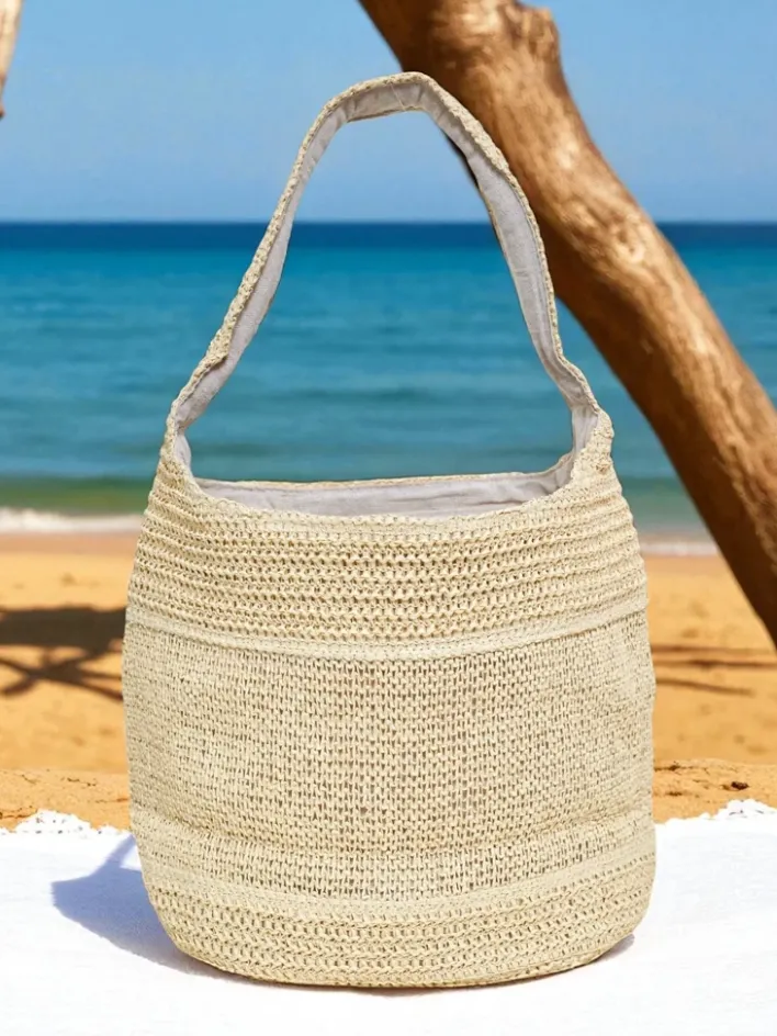 - Stylowa torebka słomiana z jedną komorą i kieszonką, zapinana na suwak. Lekka i przestronna, idealna na letnie dni. Doskonała do casualowych stylizacji, zapewnia wygodę i porządek, zachowując modny, wakacyjny urok. Perfect na plażę i miejskie spacery.