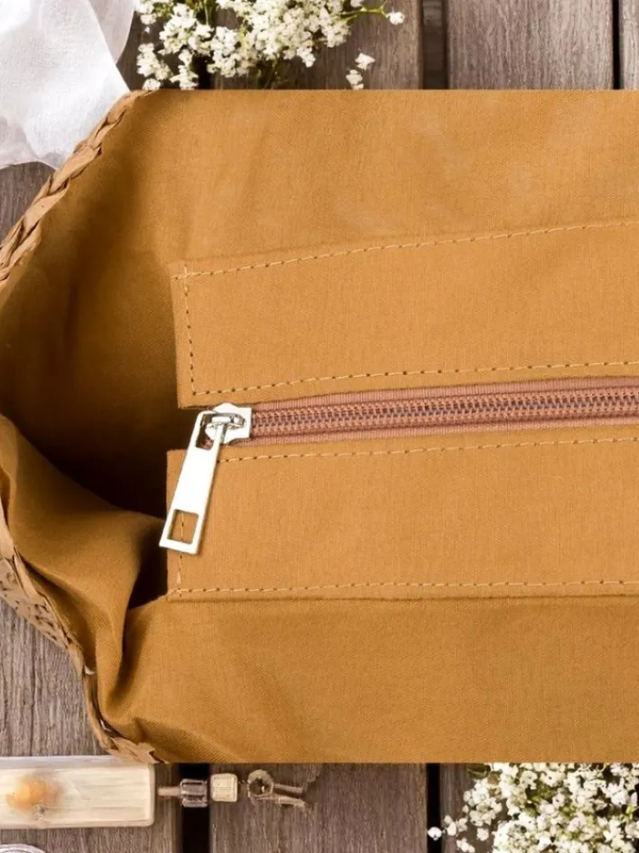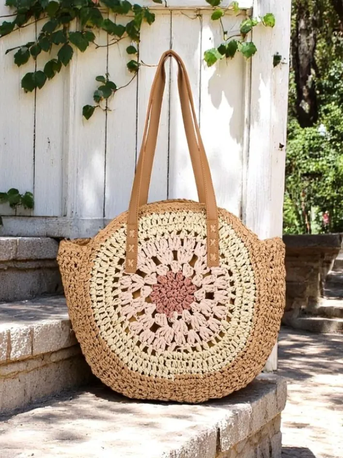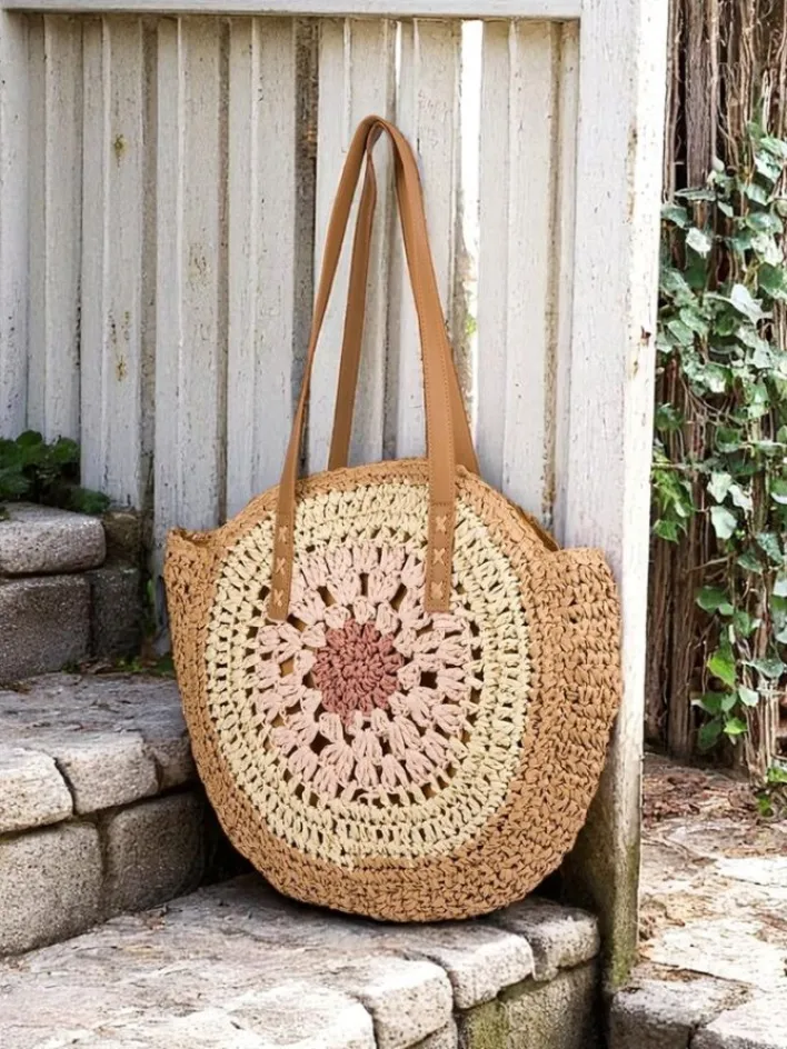 - Duża, półokrągła torebka słomiana z plecionki, ozdobiona kwiatowym wzorem. 1 komora, kieszonka, zamek. Idealna na lato, plażę i stylowe wyjścia!