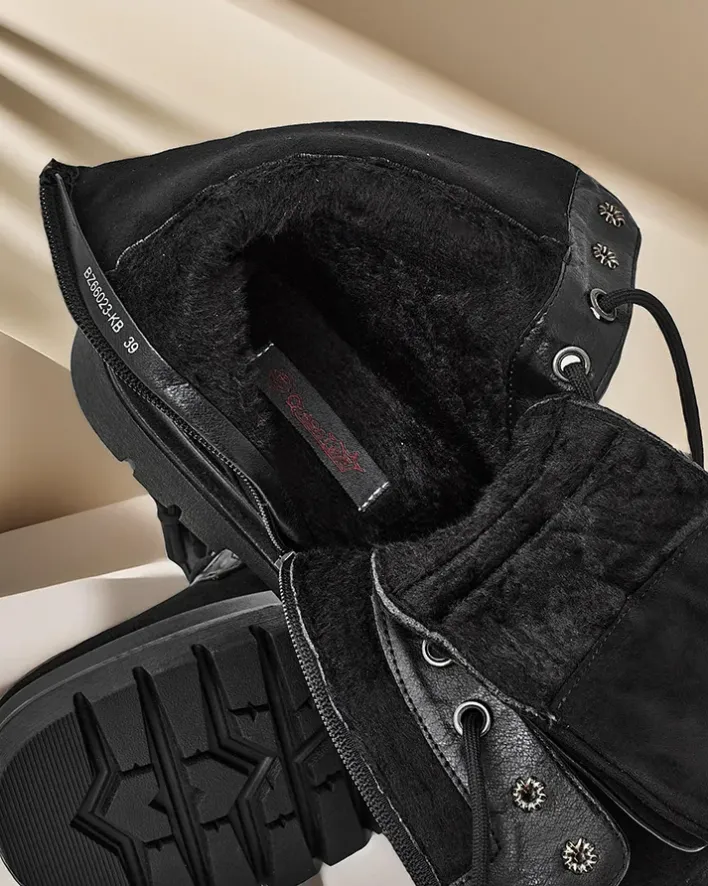 - Botki typu workery damskie to wyjątkowe obuwie łączące w sobie styl i wygodę. Wykonane ze skóry ekologicznej zamszowej i wypełnione delikatnym futerkiem. Model sznurowany i zapinany na zamek.